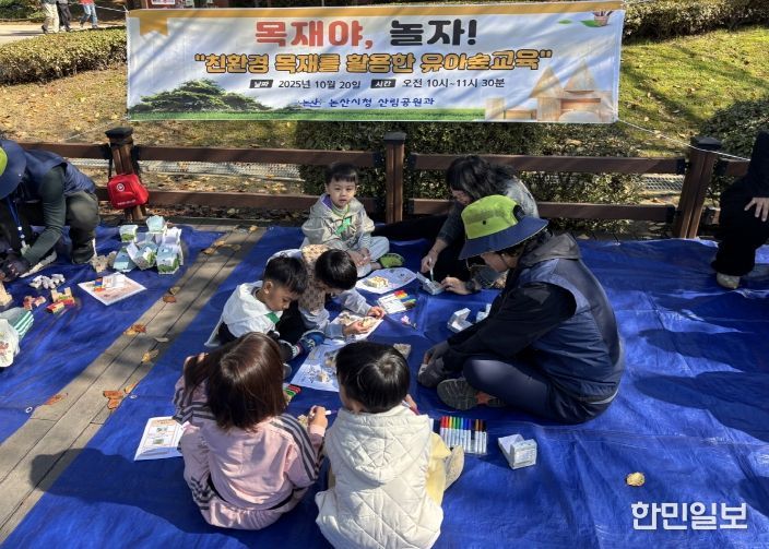 한민일보 서울포커스 유돈상 기자 | 논산시는 20일 논산시민가족공원 일원에서 지역 어린이집 아동 20여 명을 대상으로 국산 목재를 활용한 ‘유아숲교육 프로그램’을 운영했다고 밝혔다.