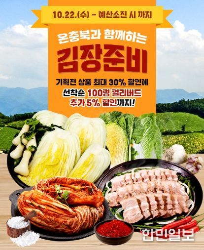 한민일보 서울포커스 임경복 기자 | 충청북도 온라인 농특산물 쇼핑몰 ‘온충북’이 본격적인 김장철을 맞아 다양한 할인행사를 잇따라 선보인다.