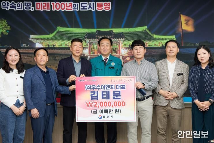 한민일보 서울포커스 김서윤 기자 | 통영시는 지난 21일 창원에 거주하고 있는 ㈜우수이엔지 대표 김태문 씨가 2년 연속으로 고향사랑기부금 200만원을 기부하고 기탁식을 진행했다.