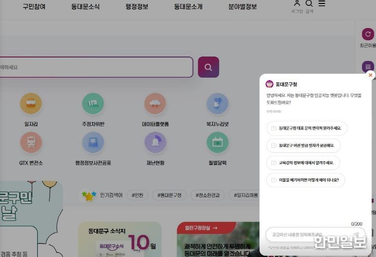 한민일보 서울포커스 임광현 기자 | 서울 동대문구는 지난 20일부터 생성형 인공지능(AI)을 기반으로 한 누리집 챗봇 서비스를 본격 운영하고 있다고 밝혔다.