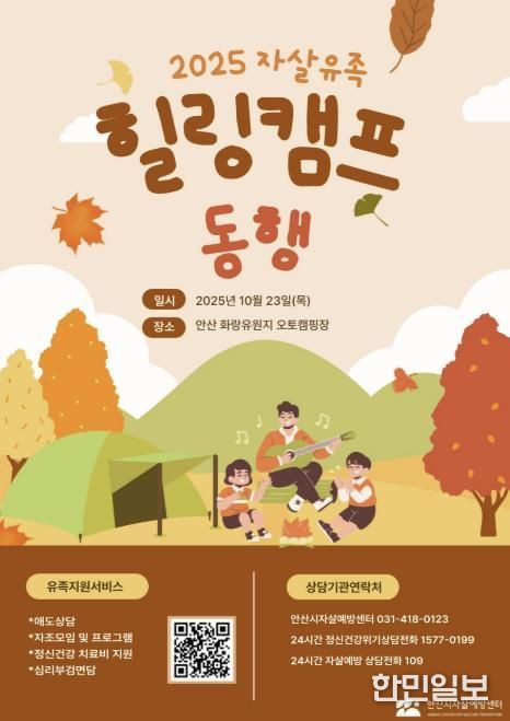 한민일보 서울포커스 임철현 기자 | 안산시는 안산시자살예방센터가 지난 23일 화랑유원지 오토캠핑장에서 자살로 가족을 잃은 유족을 위한 ‘힐링캠프’를 개최했다고 24일 밝혔다.