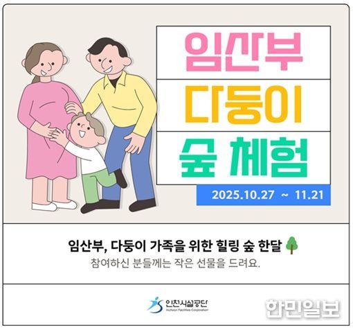 한민일보 서울포커스 유창렬 기자 | 인천시설공단영종공원사업단은 27일부터 내달 21일까지 임산부와 다둥이 가족을 대상으로 '힐링 숲 체험' 프로그램을 추가 운영한다.