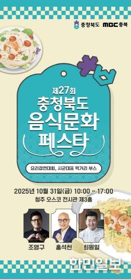한민일보 서울포커스 임경복 기자 | 충북도는 MBC충북과 공동으로 오는 10월 31일 청주오스코에서 ‘제27회 충청북도 음식문화페스타’를 개최한다고 밝혔다.