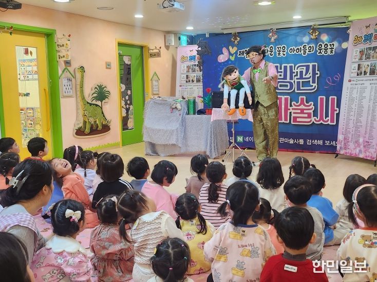 한민일보 서울포커스 유창렬 기자 | 인천남부교육지원청은 28일 미추홀구 국공립 도화다누리어린이집에서 ‘2025 찾아가는 유아 인성교육 '마술 쏙! 인성 쑥~!'’ 프로그램을 운영했다.