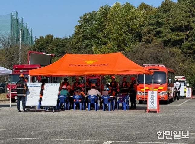 한민일보 서울포커스 황준형 기자 | 천안시는 29일 천안상록리조트에서 배터리 열폭주에 의한 화재 상황을 가정해 ‘2025년 재난대응 안전한국훈련’을 실시했다.