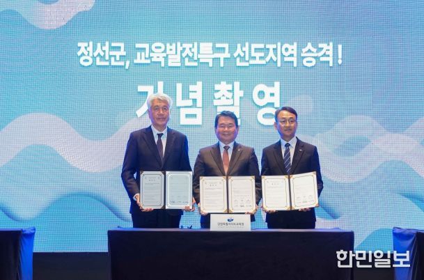 한민일보 서울포커스 곽중희 기자 | 강원특별자치도교육청은 정선군청, 정선교육지원청과 10월 30일 정선 하이원팰리스호텔에서 ‘정선 더나은교육지구 연장지정 업무협약’을 체결했다.