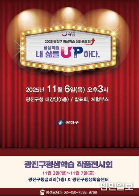 한민일보 서울포커스 임광현 기자 | 광진구는 11월 3일부터 7일까지 5일간 ‘평생학습, 내 삶을 업(UP)하다’를 주제로 ‘2025 광진구 평생학습 성과공유회’를 개최한다.