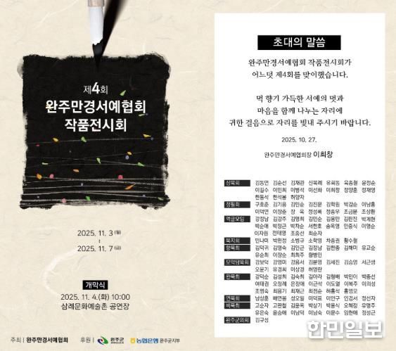 이희창 협회장은 “회원들의 땀과 열정으로 준비한 이번 전시회가 완주의 문화적 품격을 높이고, 군민 모두가 예술로 소통하는 계기가 되길 바란다”며 “앞으로도 전통서예의 아름다움을 널리 알리고 현대 감각과 조화를 이루는 예술 발전에 힘쓰겠다”고 말했다.