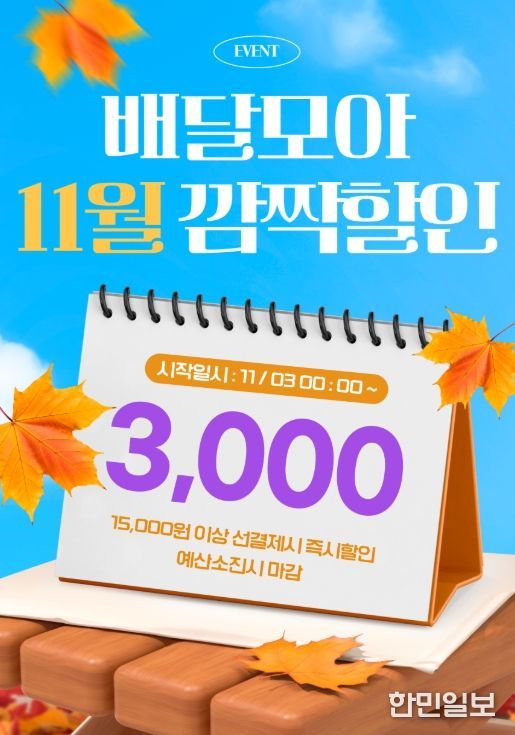 11월에는 3,000원 쿠폰을 선착순으로 1만 장 지급하는 이벤트를 진행한다.