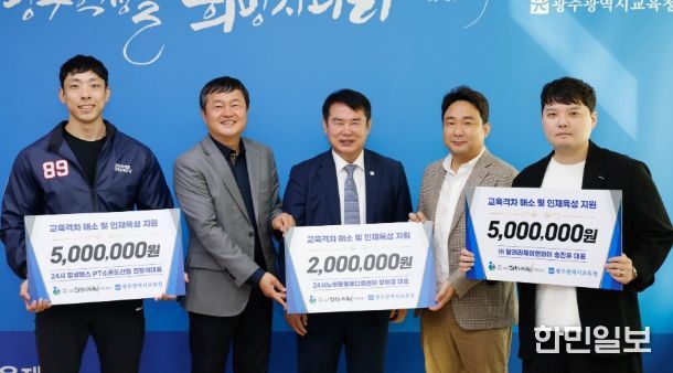 이번 기부금은 ㈜달려라 제이앤와이와 24시 평생헬스PT 소촌도산점 각 500만원, 24시 노아동물메디컬센터 200만원 등 3곳에서 광주 교육발전을 위해 마련했다.