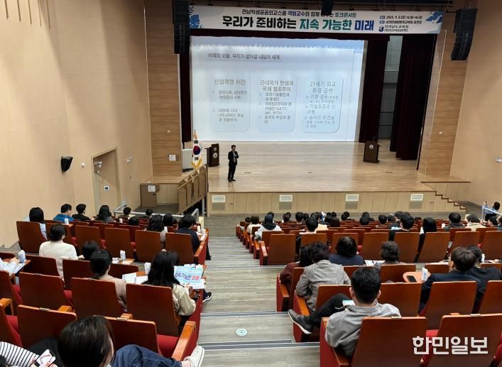 한민일보 서울포커스 임철현 기자 | 전남교육 꿈실현재단이‘우리가 준비하는 지속가능한 미래’를 주제로 마련한 토크콘서트가 지난 8일 전라남도교육청 순천만생태문화교육원 공연장에서 성황리에 펼쳐졌다.