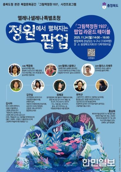 11월 24일 오후 2시에는 충북도의회 다목적회의실에서 ‘그림책정원 1937’ 팝업 라운드테이블(원탁회의)이 개최된다. 팝업북에 관심 있는 일반인 약 100명을 대상으로 국내외 그림책 전문가들의 강연과 토론이 이어진다.