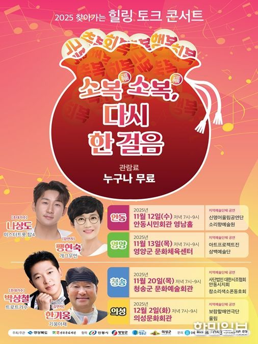 이번 행사는 12일 안동시민회관 영남홀을 시작으로, 13일 영양군문화체육센터, 20일 청송군문화예술회관, 12월 2일 의성문화회관에서 각각 오후 7시에 열리며, 관람은 무료다.