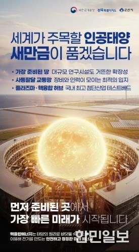 한민일보 서울포커스 김용택 기자 | 군산시 지역사회에서 이른바 ‘꿈의 에너지’라 불리는 인공태양 연구시설의 새만금 유치를 위한 목소리가 잇따르고 있다.