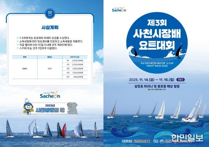 한민일보 서울포커스 김은금 기자 | 수려한 해양경관을 자랑하는 사천시 광포항 해역에서 제3회 사천시장배 요트대회가 11월 14일부터 16일까지 3일간 개최된다.