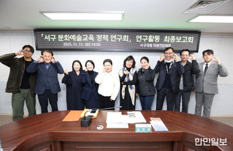 한민일보 서울포커스 김용택 기자 | 인천 서구의회 의원연구단체 '서구 문화예술교육 정책 연구회(대표의원 김미연)'가 11일 제3차 정기회의 및 최종보고회를 열고, 올 한 해 진행한 정책 연구활동을 성공적으로 마무리했다.