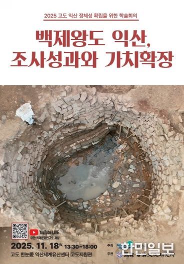 익산시는 원광대학교 마한·백제문화연구소와 함께 오는 18일 오후 1시 30분 고도 한눈애(愛) 익산세계유산센터에서 '고도 익산의 정체성 확립을 위한 학술회의'를 연다고 13일 밝혔다.