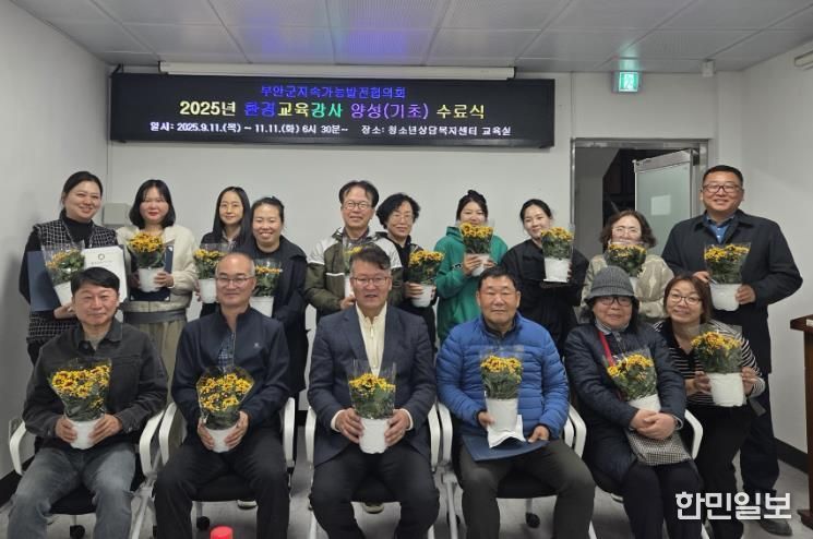 한민일보 서울포커스 김용택 기자 | 부안군과 지속가능발전협의회는 부안군 환경교육 강사 양성을 위한 기초과정 프로그램을 실시하고 지난 11일 교육 수료식을 개최했다.
