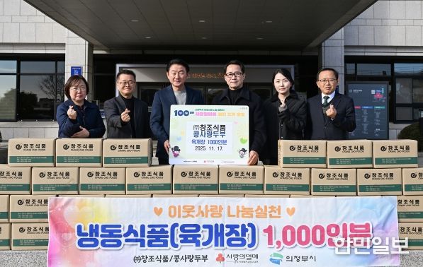 한민일보 서울포커스 심기옥 기자 | 의정부시는 11월 17일 ㈜창조식품이 냉동식품(육개장) 1천인분(550만 원 상당)을 송산·신곡권역에 기부하며 ‘100일간 사랑릴레이 배턴 잇기’ 에 동참했다고 밝혔다.