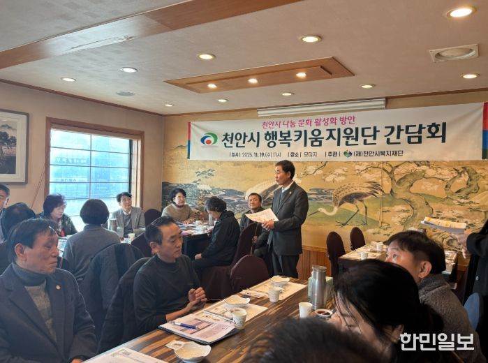 한민일보 서울포커스 황준형 기자 | (재)천안시복지재단은 19일 천안시 행복키움지원단과 함께 천안시 나눔 문화 활성화를 위한 간담회를 개최했다.