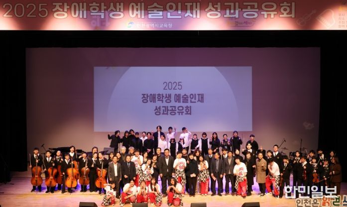한민일보 서울포커스 유창렬 기자 | 인천광역시교육청은 19일 청라 블루노바홀에서 학생·학부모·교직원·시민 등 350여 명이 참석한 가운데 ‘2025 장애학생 예술인재 성과공유회-예술로, 잇다’를 개최했다.