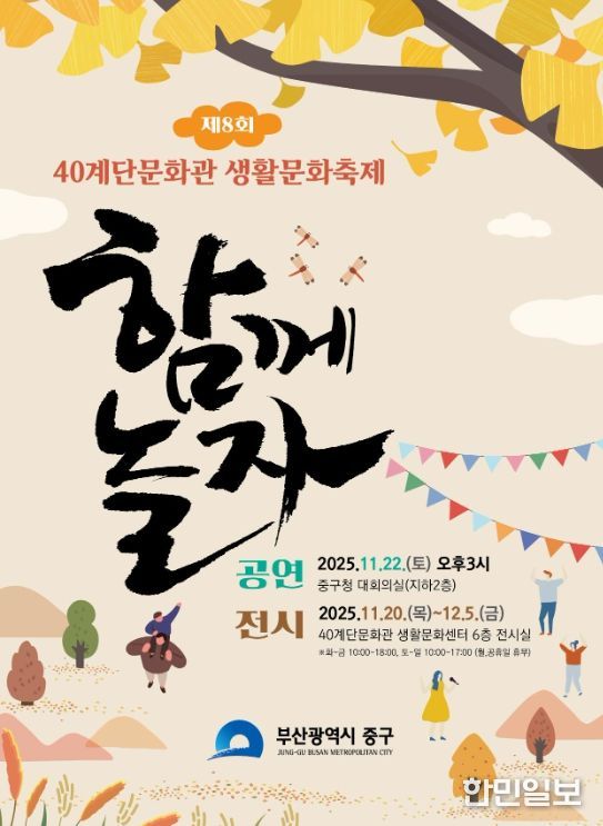 한민일보 서울포커스 임광현 기자 | 부산 중구는 오는 11월 20일부터 12월 5일까지 40계단문화관 생활문화센터 및 중구청 대회의실에서 제8회 40계단문화관 생활문화축제를 개최한다.