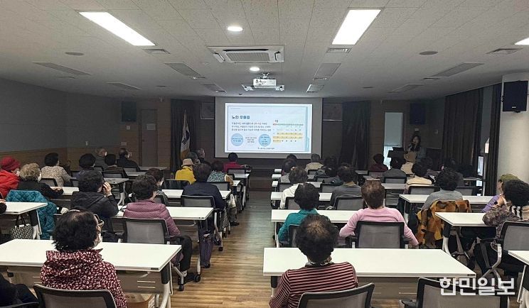 한민일보 서울포커스 임광현 기자 | 부산 중구 보수동 행정복지센터는 지난 19일 행정복지센터 2층 회의실에서 노인 우울증 관리를 주제로 지역 주민 50여명이 모인 가운데 2025년 하반기“건강 하이 클래스”건강교실을 실시했다.