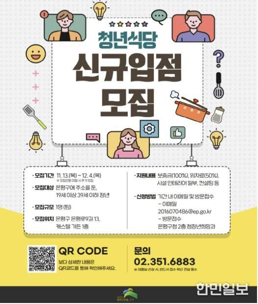 한민일보 서울포커스 임광현 기자 | 서울 은평구는 내달 4일까지 ‘청년식당’에 입점할 청년을 모집한다고 밝혔다.