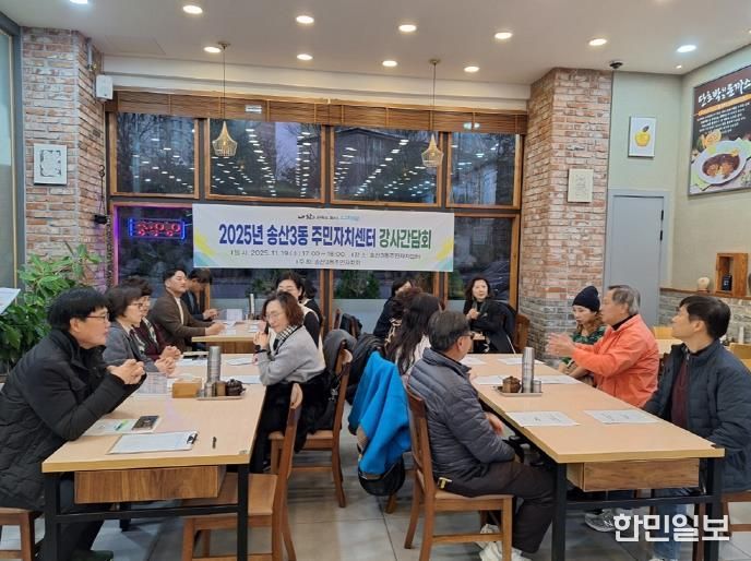 한민일보 서울포커스 심기옥 기자 | 의정부시 송산3동행정복지센터는 11월 19일 송산3동 주민자치회(회장 이현동)가 주민자치센터 프로그램 강사 간담회를 실시했다고 밝혔다.