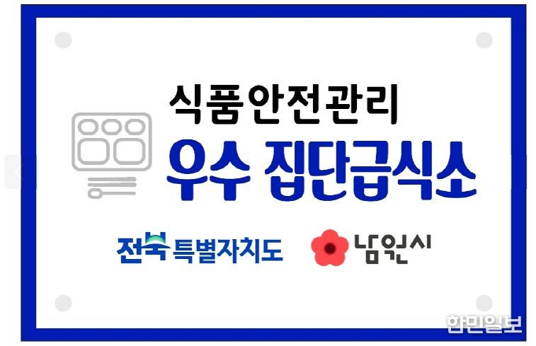 한민일보 서울포커스 박용남 기자 | 남원시는 작년에 이어 올해에도 식품안전관리 우수 집단급식소 3개소를 지정했다고 밝혔다.