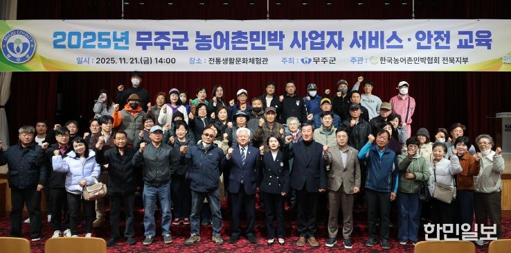 한민일보 서울포커스 박용남 기자 | 무주군은 지난 21일 무주읍 소재 전통생활문화체험관에서 '2025년 농어촌 민박 사업자 서비스·안전 집합교육'을 실시했다고 밝혔다.