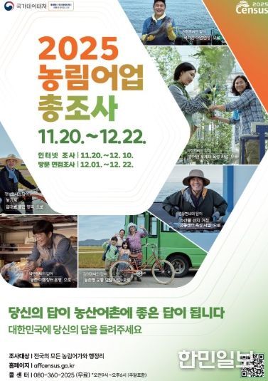 한민일보 서울포커스 김은금 기자 | 양산시는 11월 20일부터 12월 22일까지 2025 농림어업총조사를 실시한다.