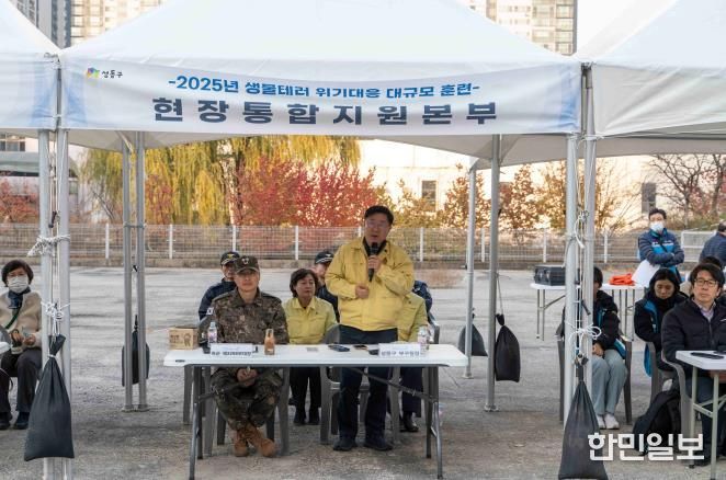 한민일보 서울포커스 임광현 기자 | 서울 성동구는 11월 20일 마장동 한국전력 자재센터 부지에서 유관기관 합동 '2025년 생물테러 위기대응 현장훈련'을 실시했다고 밝혔다.