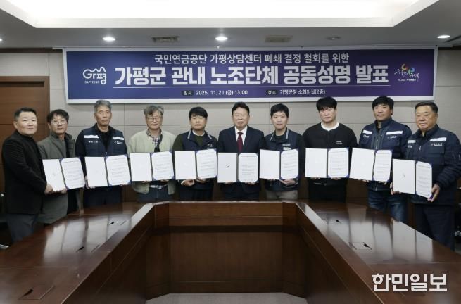 한민일보 서울포커스 최성훈 기자 | 가평군과 지역 노동조합들이 국민연금공단의 가평상담센터 폐쇄 방침에 맞서 강력한 공동 대응에 나섰다.