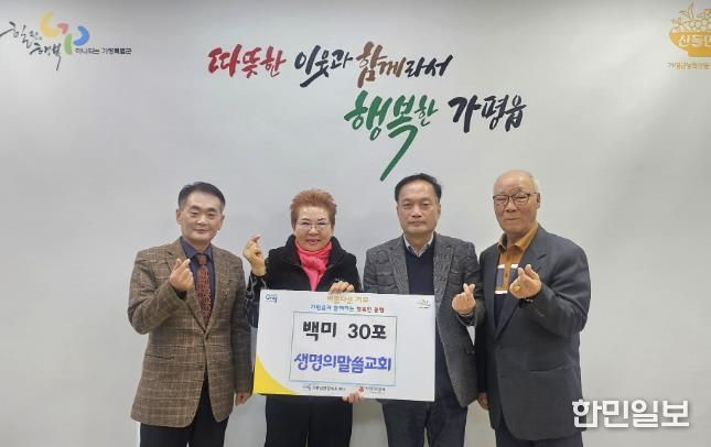 장석조 가평읍장은 “관심과 나눔을 실천해 주신 생명의 말씀교회에 진심으로 감사드린다”며 “기탁자의 뜻에 부응해 취약계층 지원에 더욱 힘쓰겠다”고 밝혔다.