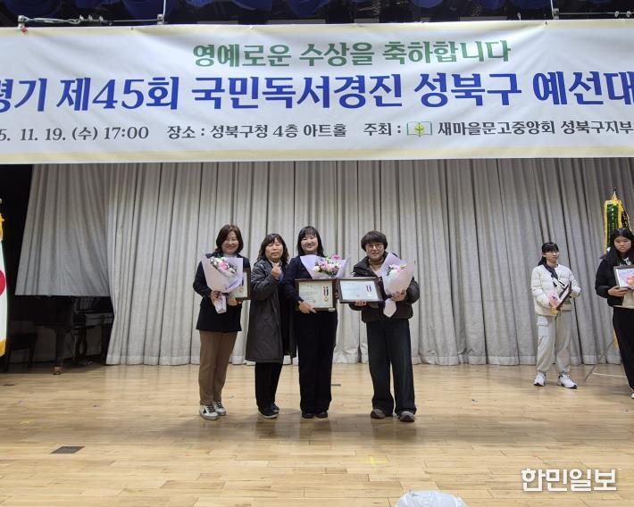 한민일보 서울포커스 김봉순 기자 | 서울 성북구 성북동 새마을문고가 지난 19일 성북구청 4층 아트홀에서 열린 대통령기 제45회 국민독서경진 성북구 예선대회 시상식에서 단체부 우수상과 개인부 장려상을 수상했다.