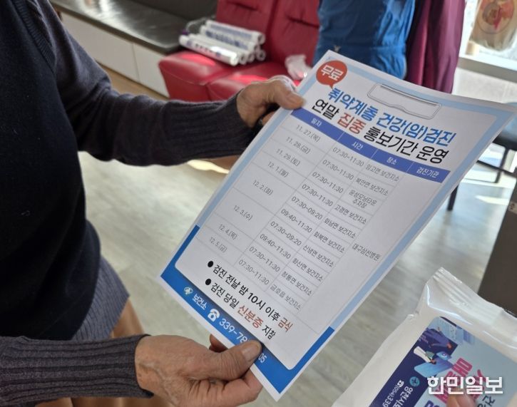 한민일보 서울포커스 김봉순 기자 | 영천시는 27일부터 12월 5일까지 대구삼선병원과 함께 9개 읍・면을 순회하며 취약계층을 대상으로 연말 출장 건강(암)검진을 실시하며, 집중 홍보에 나섰다.