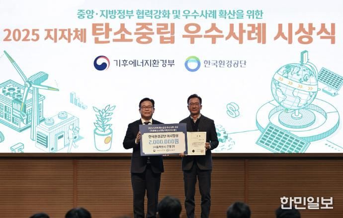 한민일보 서울포커스 임광현 기자 | 서울 은평구는 지난 17일 ‘2025 지자체 탄소중립 콘퍼런스’에서 탄소중립 이행성과 부문 우수기관으로 선정되어 한국환경공단 이사장상을 받았다고 밝혔다.