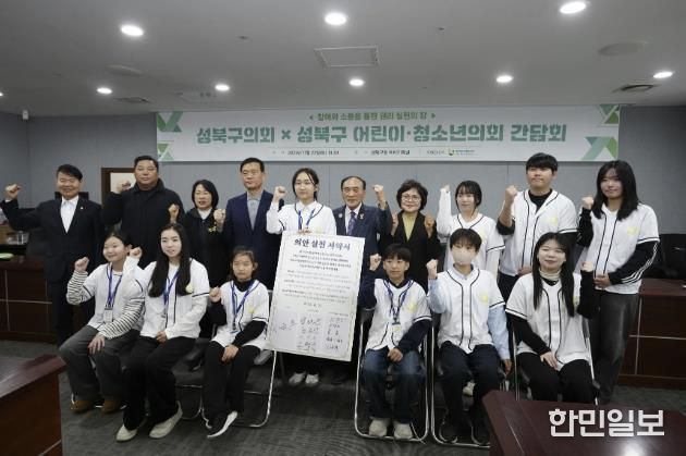 한민일보 서울포커스 김봉순 기자 | 서울 성북구가 지난 22일 성북구의회에서 어린이·청소년의회 의원, 대학생 보좌관과 함께 ‘어린이·청소년 의견 실행·소통의 장’ 간담회를 진행했다.