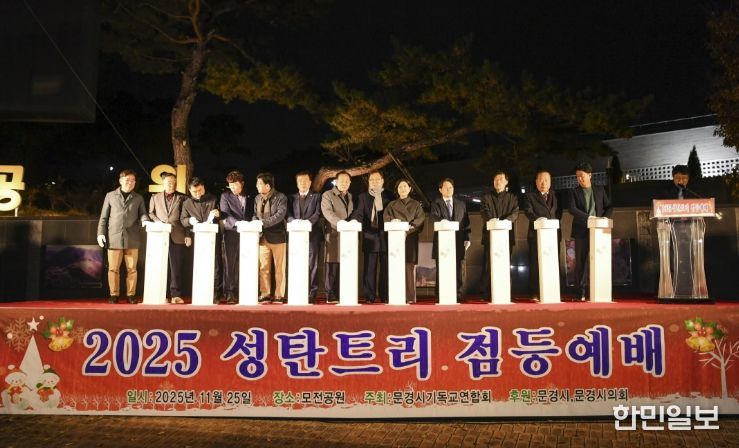 한민일보 서울포커스 김봉순 기자 | 문경시는 지난 25일 성탄을 맞이하여 성탄 트리를 설치하고 문경시기독교연합회(회장 문은석) 주관으로 모전공원 광장에서 관내 기독교 신도 및 시민 등 200여 명이 참석한 가운데 ‘2025년 시민화합 성탄트리 점등식’을 했다.