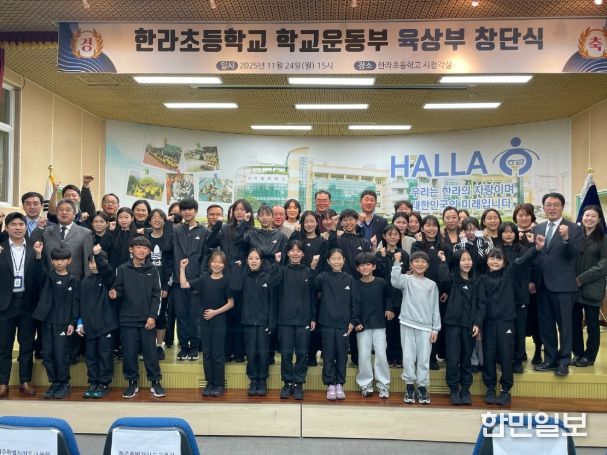 한민일보 서울포커스 임철현 기자 | 제주도교육청 한라초등학교는 24일 시청각실에서 육상부 선수와 교육가족이 함께 창단식을 개최했다.
