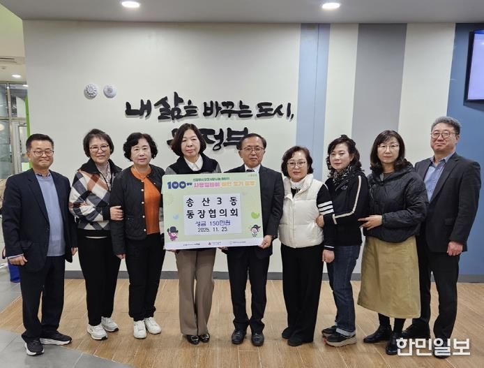 한민일보 서울포커스 심기옥 기자 | 의정부시 송산3동행정복지센터는 11월 25일 송산3동 통장협의회가 ‘100일간 사랑릴레이 배턴 잇기’에 동참해 성금 150만 원을 기탁했다고 밝혔다.