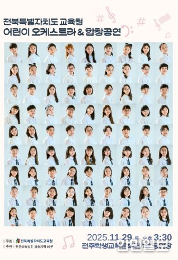 한민일보 서울포커스 임철현 기자 | 전북특별자치도교육청은 오는 29일 전주학생교육문화회관 1층 공연장에서 ‘2025 전북특별자치도교육청 어린이 오케스트라 & 합창공연’을 개최한다.