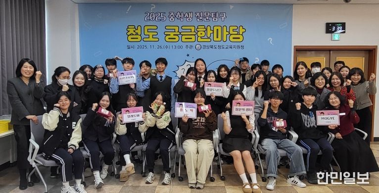 한민일보 서울포커스 임철현 기자 | 청도교육지원청 오홍현 교육장은 지난 11월 26일 청도교육지원청 3층 대회의실에서 ‘제 1회 청도 중학생 질문·탐구 궁금한마당’ 지역 예선을 개최했다. 이번 대회에는 관내 모든 중학교가 참여해, 3학년 학생 3~4명과 지도교사 1명이 한 팀을 이룬 총 6개 팀이 사제동행 형태로 참가했다.