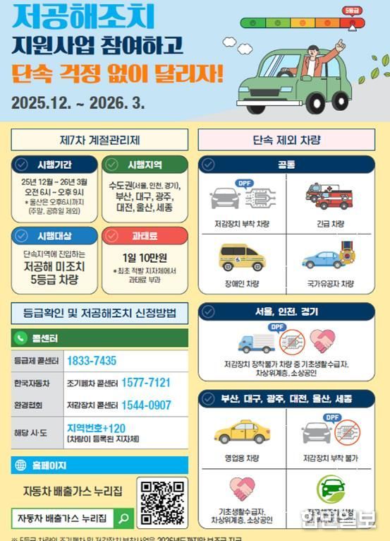 또 한시적으로 제외됐던 저공해조치 신청 차량은 이번 12월 1일부터 단속 대상에 포함된다.