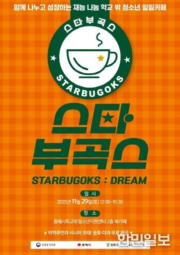 한민일보 서울포커스 임경복 기자 | 동해시는 오는 11월 29일, 학교밖청소년지원센터 소속 청소년 10명이 운영하는‘스타부곡스:드림’일일카페를 청소년상담복지센터 2층에서 개최했다.
