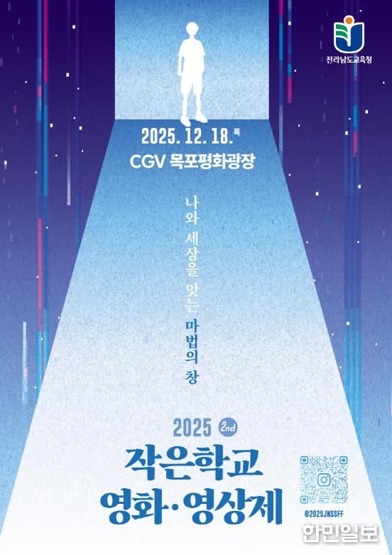 한민일보 서울포커스 임철현 기자 | 전라남도교육청이 12월 18일부터 20일까지 목포 CGV 평화광장과 폰타나비치호텔, 목포시네마MM 등에서 ‘2025. 전라남도교육청 작은학교 영화‧영상제’를 연다.