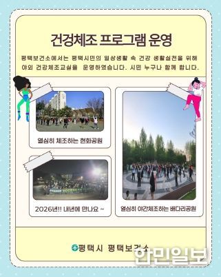 한민일보 서울포커스 황준형 기자 | 평택시는 시민들의 건강한 생활 습관 형성을 위해 운영한 2025년 야간 건강체조 프로그램이 지난 11월 26일 상하반기 일정을 성공적으로 마무리했다고 밝혔다.