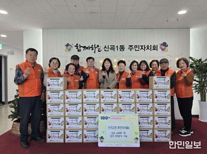 한민일보 서울포커스 심기옥 기자 | 의정부시 신곡1동주민센터는 12월 1일 신곡1동 주민자치회가 성금 100만 원과 김장김치 80상자를 기탁했다고 밝혔다.