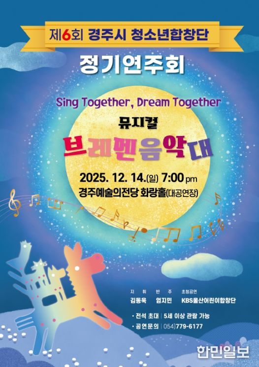 한민일보 서울포커스 김봉순 기자 | 경주시는 오는 14일 저녁 7시 경주예술의전당 화랑홀에서 ‘제6회 경주시 청소년합창단 정기연주회’를 개최한다.
